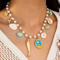 قلادة للبيع بالجملة قلادة نسائية متعددة الطبقات على طراز المنتجعات قلادة لؤلؤ قلادة عصرية من سبيكة عتيقة قلادة متعددة السحر