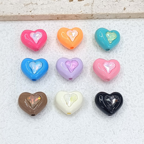 عصري كريم منغم مزدوج الوجهين الزركون مرصع على شكل قلب حبات الاكريليك فضفاضة مواد ديي مثالية لسلاسل الهاتف الملحقات