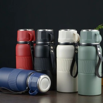 ถ้วยสแตนเลสเก็บความร้อนแบบ316/800/1000มล. ขวดน้ำชาสุญญากาศพร้อมที่จับเชือก600ใหม่